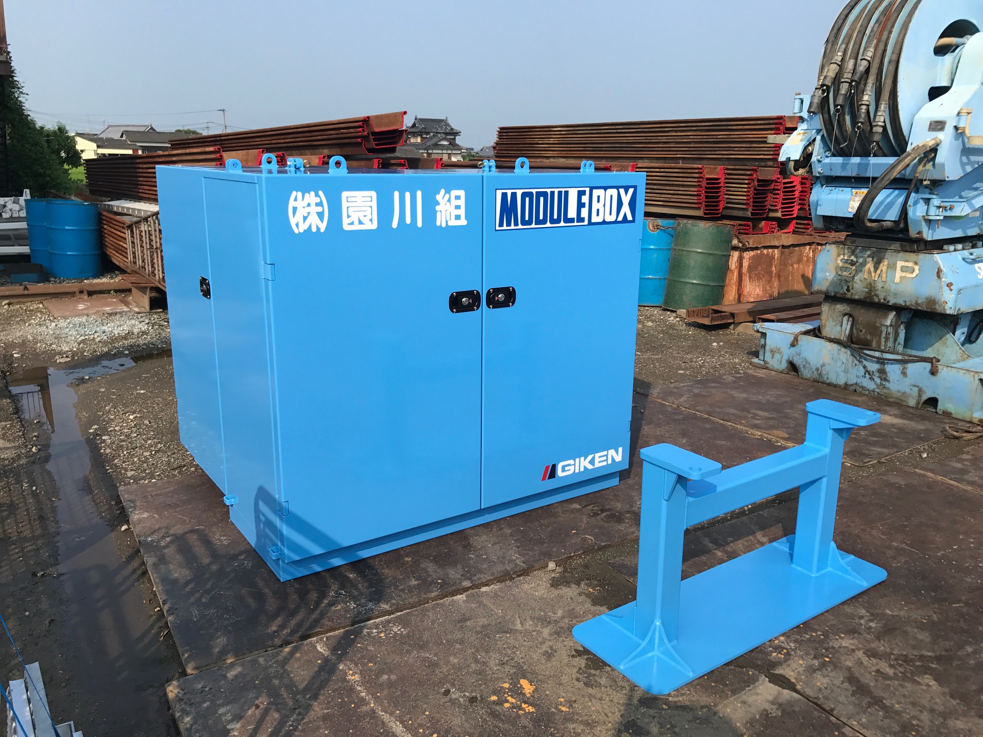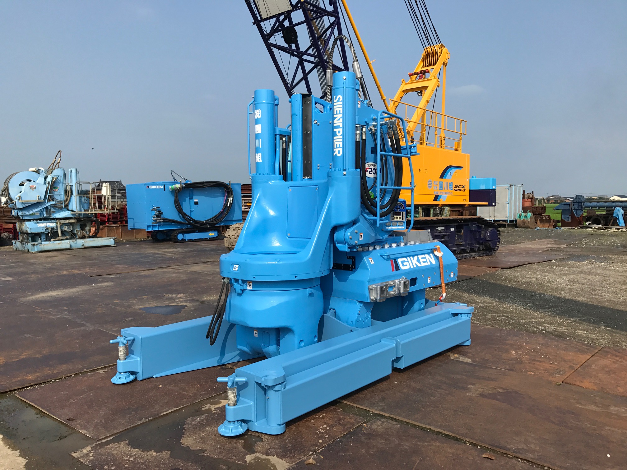 技研製作所のF201を導入しました。 幅400~600までの鋼矢板の打設が可能になります。硬質地盤対応の機材は後日導入になります。