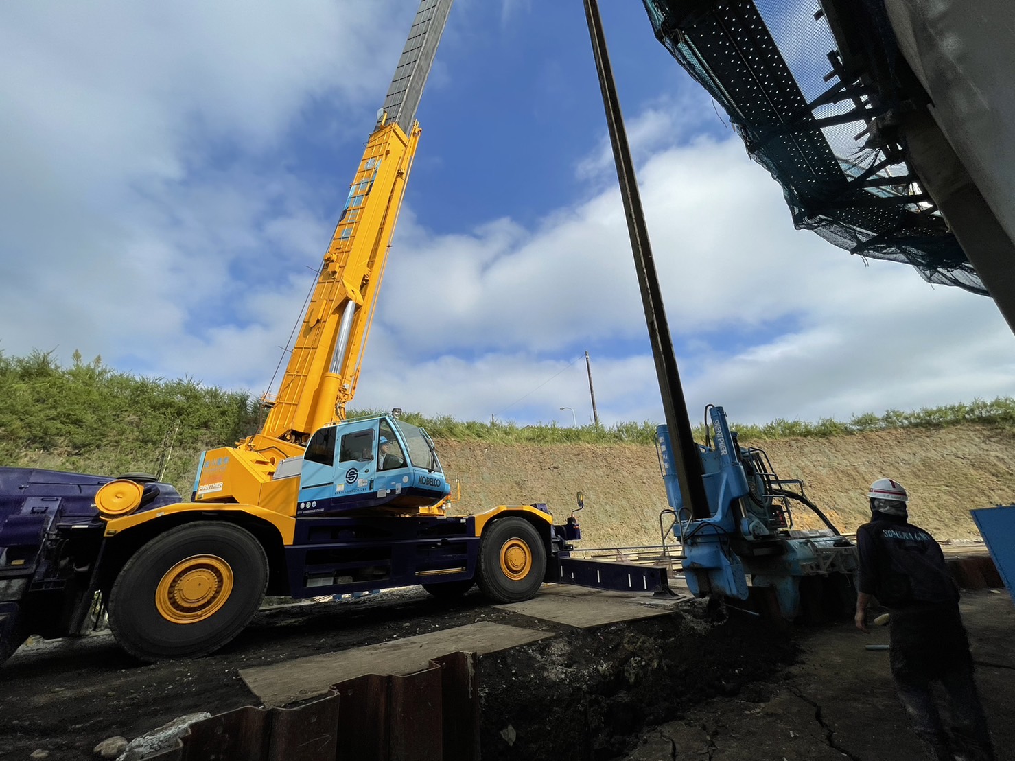 また、クレーン作業だけではなく鋼矢板圧入機の操作も最近任されるようになりました。